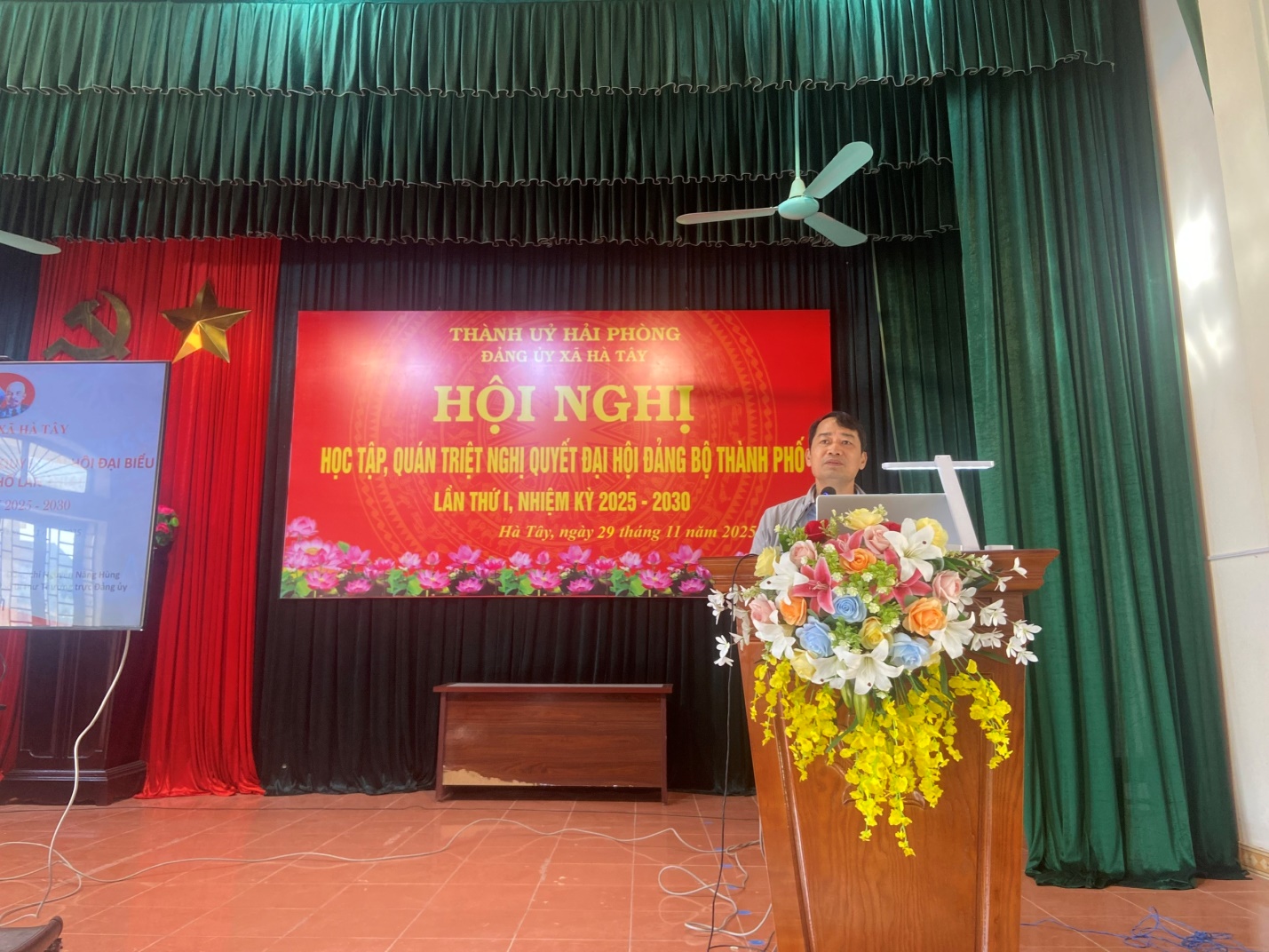 Thực hiện Kế hoạch số 10-KH/TU ngày 08/11/2025 của Thành ủy Hải Phòng về tổ chức Hội nghị học tập, quán triệt Nghị quyết Đại hội Đảng bộ thành phố lần thứ I, nhiệm kỳ 2025-2030, sáng ngày 29/11/2025, Ban Thường vụ Đảng ủy xã Hà Tây đã tổ chức Hội nghị học tập, quán triệt Nghị quyết Đại hội Đảng bộ thành phố lần thứ I, nhiệm kỳ 2025-2030 theo hình thức trực tiếp.
