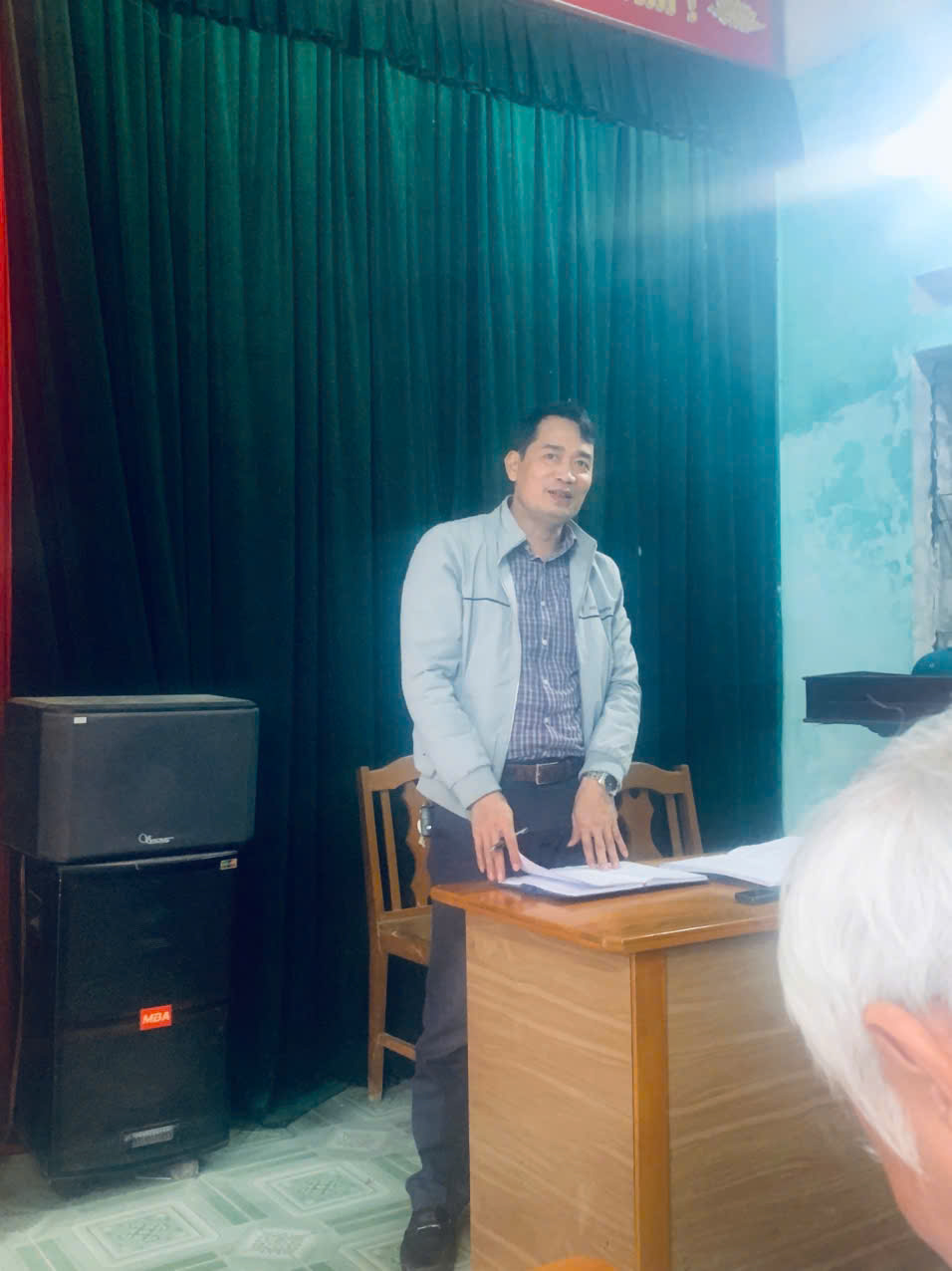 Đồng chí Nguyễn Xuân Huyến - Phó Bí thư Chi bộ thôn An Liệt 3 phát biểu tại buổi sinh hoạt