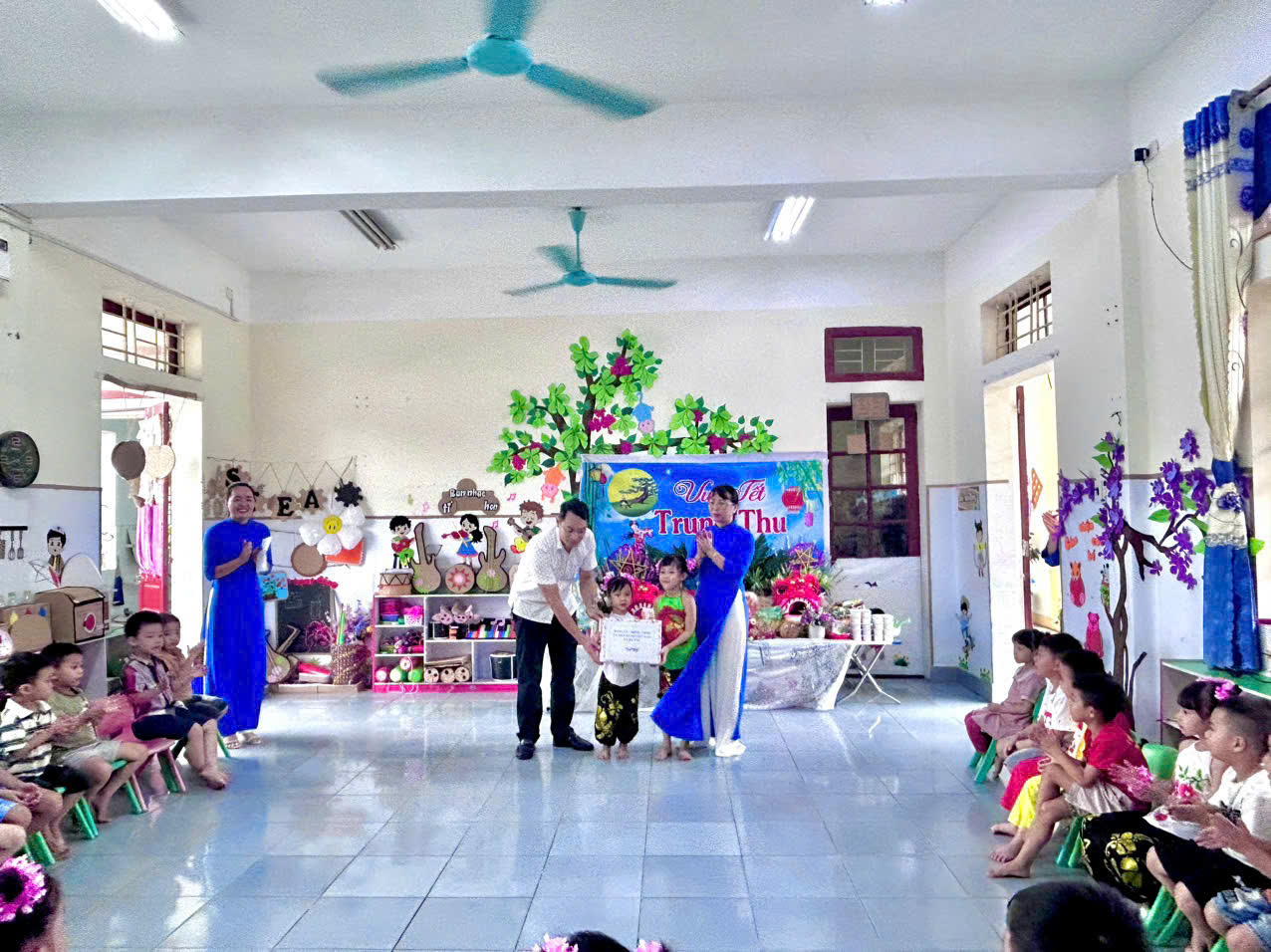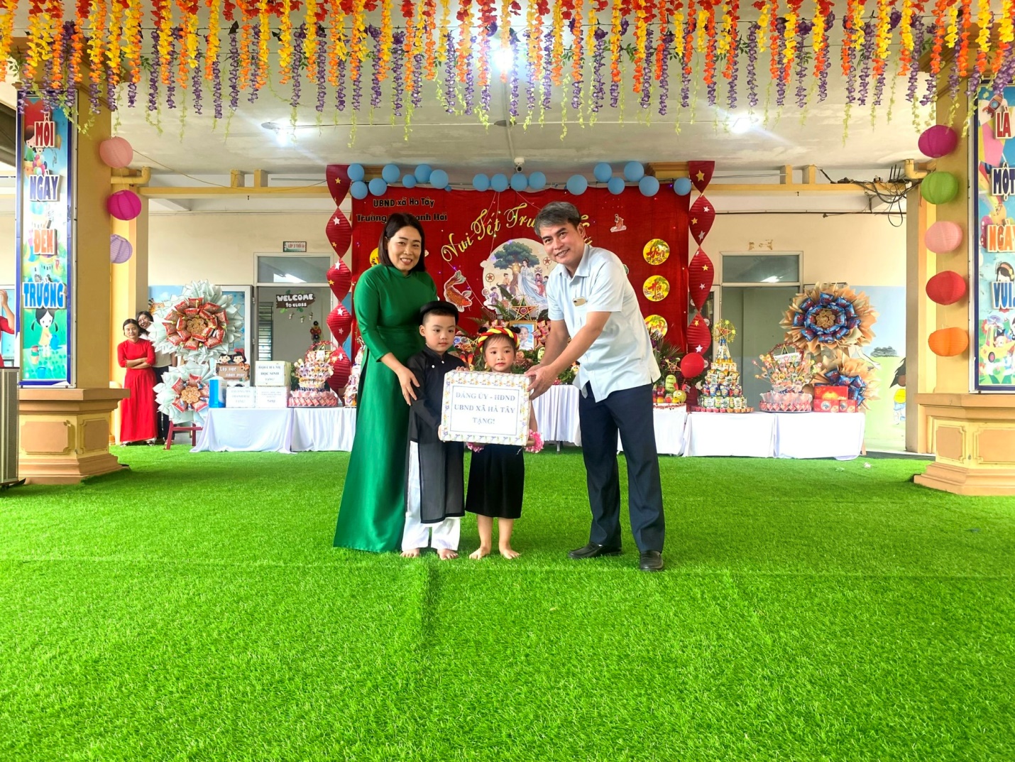 Đồng chí Nguyễn Năng Hùng – Phó Bí thư thường trực Đảng ủy xã thăm, tặng quà tết trung thu Trường Mầm non Tân An