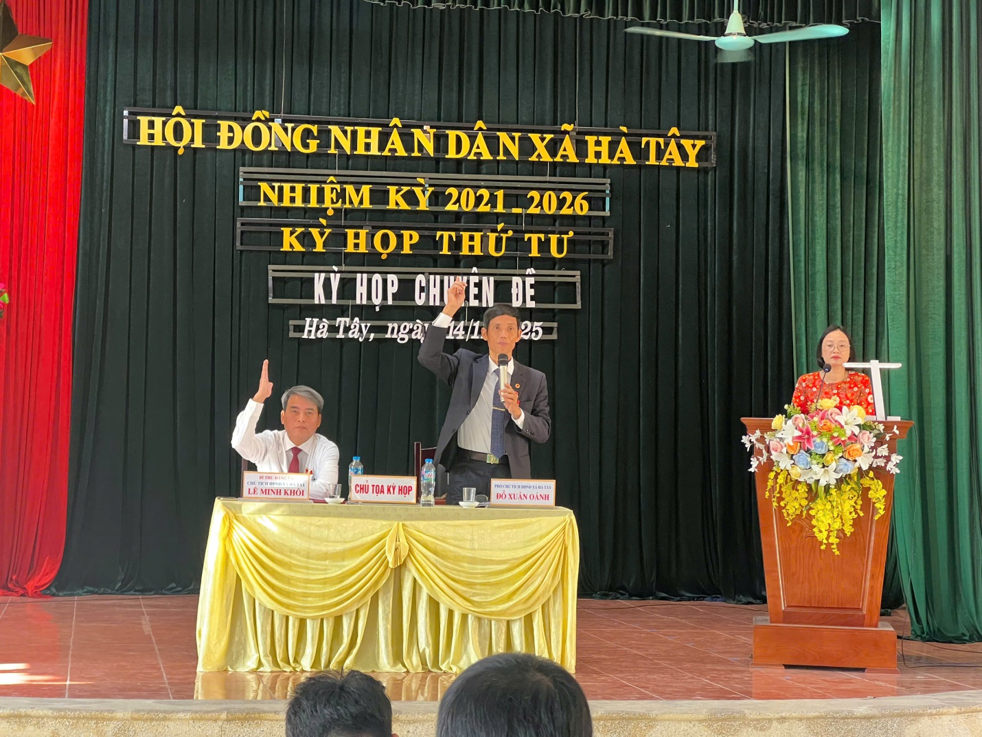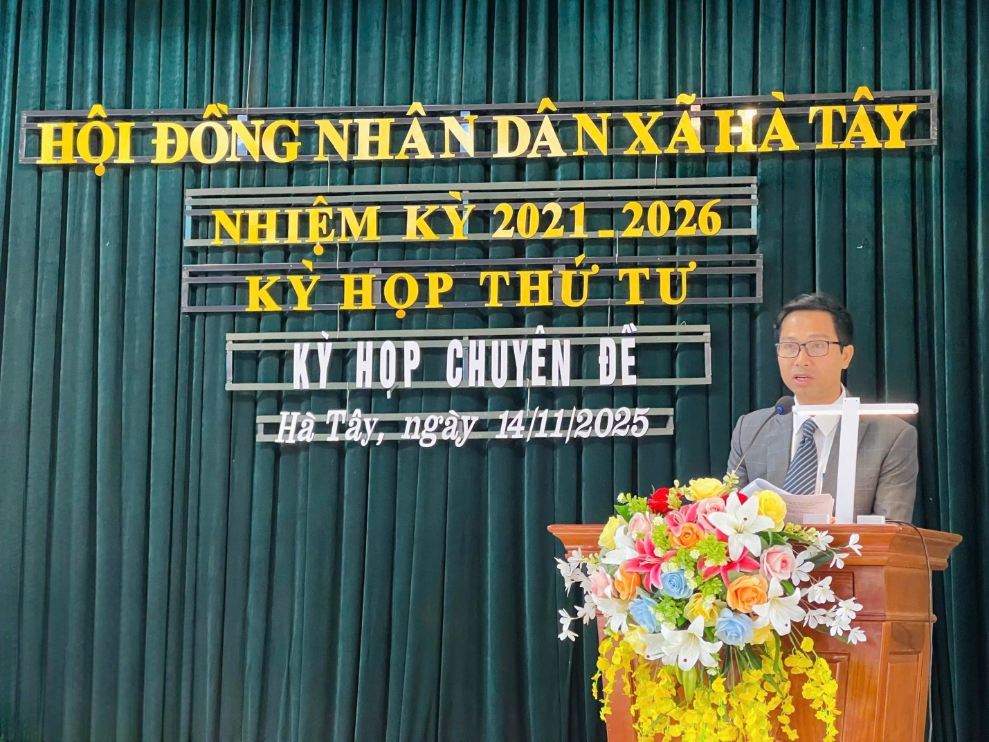 Sáng ngày 14/11/2025, Hội đồng nhân dân xã Hà Tây khoá I, nhiệm kỳ 2021-2026 tổ chức Kỳ họp thứ tư (kỳ họp chuyên đề) để xem xét, quyết định các nội dung thuộc thẩm quyền theo quy định của Luật.