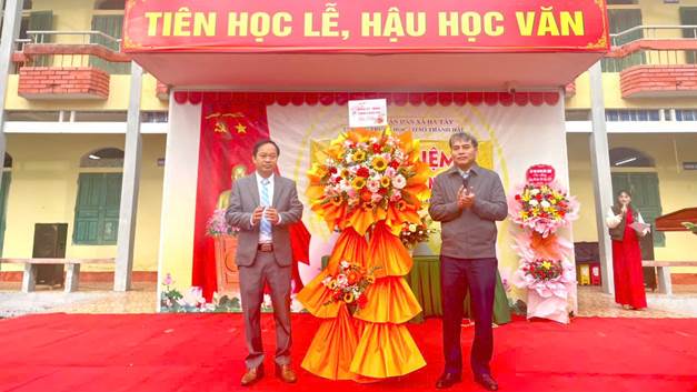 phát biểu và tặng hoa chúc mừng Trường THCS Thanh Hải