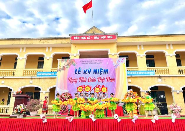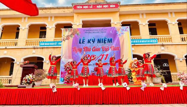 Tiết mục múa của các cô giáo Trường Tiểu học Tân An tại lễ kỷ niệm