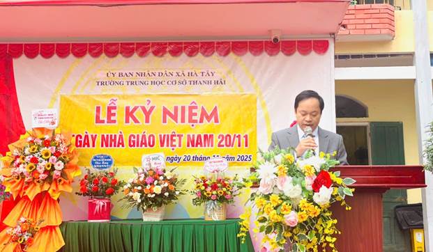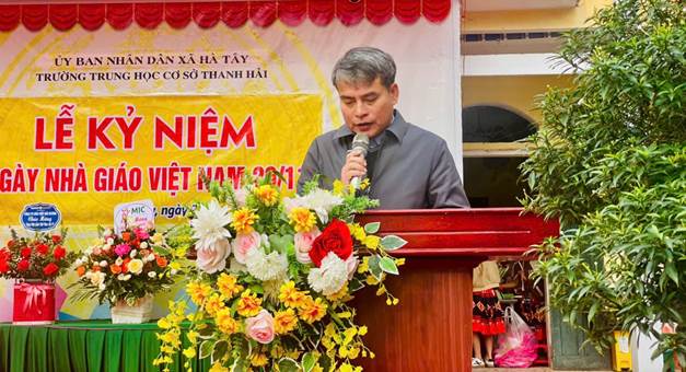Thầy Nguyễn Văn Nam - Hiệu trưởng Trường THCS Thanh Hải phát biểu tại Lễ kỷ niệm