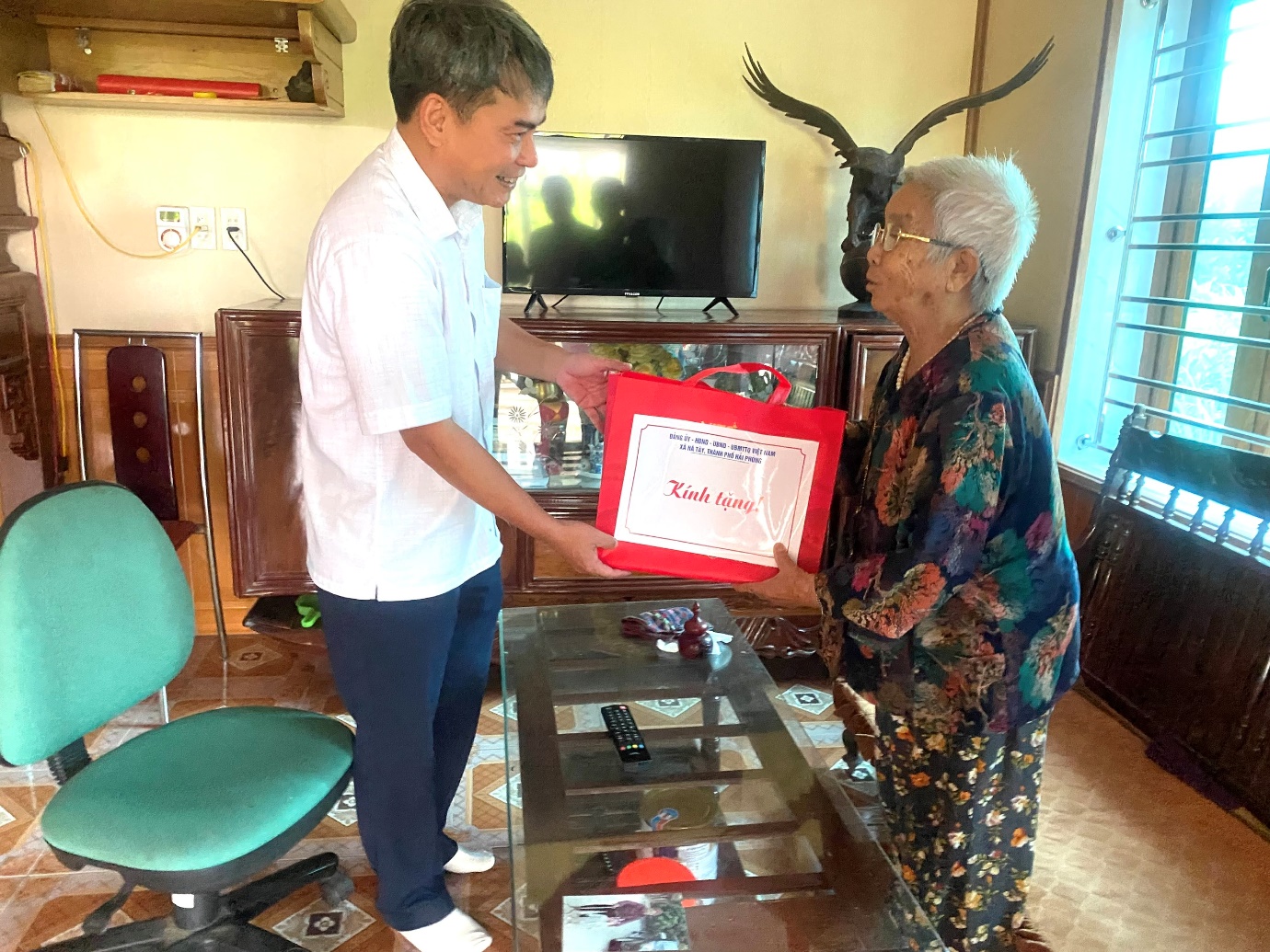 Tại mỗi gia đình đến thăm, các đồng chí lãnh đạo Đảng ủy, HĐND, UBND, Ủy ban Mặt trận Tổ quốc đã ân cần hỏi thăm sức khỏe, bày tỏ tình cảm và sự tri ân sâu sắc đối với những đóng góp của các cụ trong sự nghiệp xây dựng và phát triển quê hương. Đồng thời mong muốn các cụ luôn giữ gìn sức khỏe, tiếp tục là tấm gương sáng cho các thế hệ con cháu noi theo.